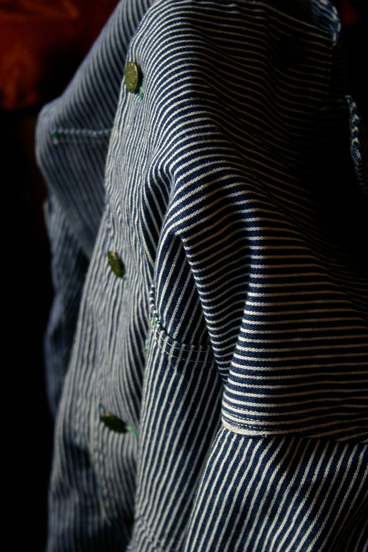 Inspired by the Japanese concept of Shokunin — a devotion to craft beyond mastery. This chore coat is cut and sewn in Norfolk, VA from 100% cotton, 13oz (≈440 gsm) natural indigo sashiko ori fabric. Wood buttons. Every detail, from the stitching to the hand-sewn buttons, reflects purpose and precision.